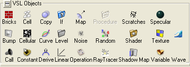 4. Click the VSL Objects button (the small + sign). This shows you the VSL objects, which you can use to define material properties. |