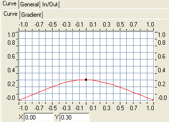 Edit the curve shape so that the maximum height is in the middle (see the picture below). You can select existing points by clicking them or with a drag box the same way as when editing geometric objects. To add a new point, simply drag the curve from a point holding the left mouse button down. You can delete the unnecessary points using the Delete function from the popup menu. Note that there are actually three curves, but edit them all to a same shape, because we do not want color distortions this time - white should look white in reflections. The the start and end values of the curve can be slightly above zero, which makes the surface reflective everywhere. |