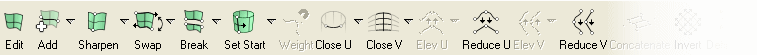 Many of the direct curve manipulation tools, such as Break and Sharpen, can also be applied to surfaces. The only difference is that surfaces have two parameter directions (called u and v) in which they can be manipulated.