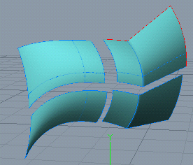 The Break tool breaks the mesh through the specified curve. Again, the workflow is similar to the previous Add and Sharpen tools. Let's split the mesh we created in the previous example into four parts: 1. Click the Break tool button. 2. Drag over the mesh to define the positions for the U- and V-directed curves. |