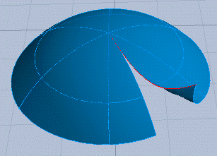Now the semi sphere is open in the both parameter directions. Let's apply Break by V Directed Curve again. Now the result is two separate meshes. |