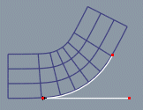 The tool asks the user to define an axis with specified length. This axis can then be bent and all the target points will be deformed accordingly. To bend a nurbs mesh: 1. Create a nurbs mesh consisting of 10 x 6 control points 2. Select the mesh and activate the bend tool. Then define bending axis along one of the edges of the nurbs mesh. |