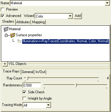 The raytrace object outputs the result of ray tracing which is usually added to the contents of the illumination channel.